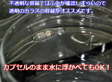 タマミジンコの休眠卵を50粒程度水面に浮かし